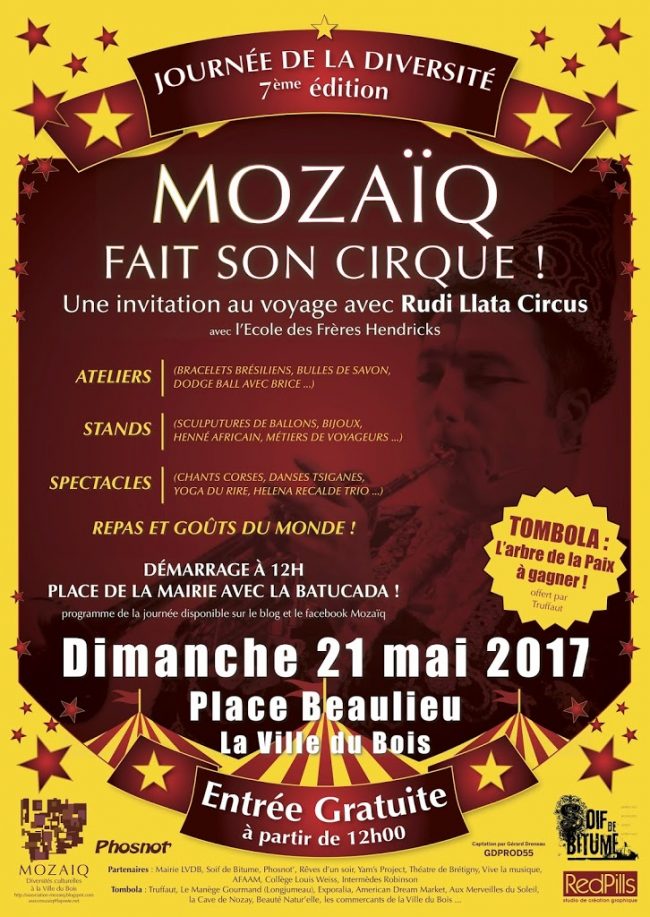 Attention plus que quelques jours pour notre Journée de la Diversité. Nous vous attendons nombreux le 21 mai et même si le temps est gris un chapiteau de cirque nous attend avec des spectacles et des surprises.