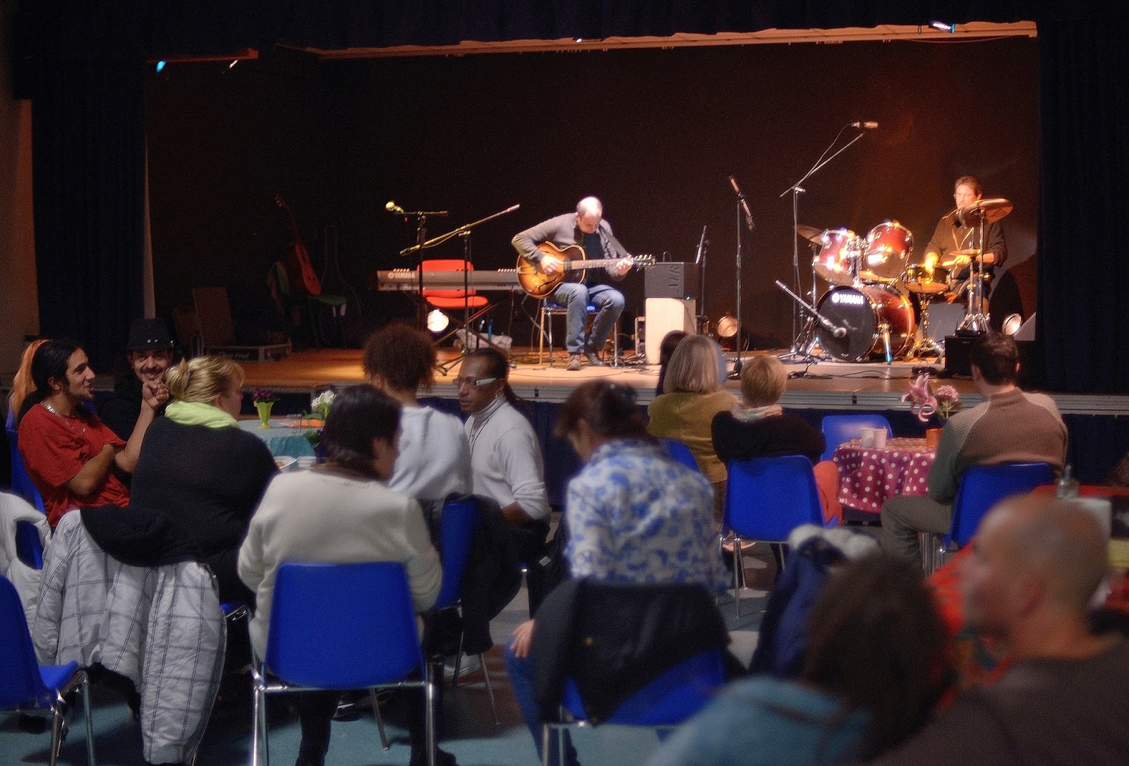 Hier, le Boeuf musical de Mozaïq s’est déroulé dans une ambiance incroyable. Les ateliers SLAM (animé par Hatem Jazi) et Maloya (animé par Bianca) ont été tout simplement étonnants. Les textes écrits par une vingtaine de personnes ont été déclamés ensuite sur scène par les participants accompagnés en musique par Stéphane et Didier. Une poésie moderne, sensible sur le thème de la Diversité où l’humour a su se joindre à l’émotion. Après un plantureux buffet et les excellentes crêpes de Nathalie, Isabelle et Elsa, la musique a pris toute sa place. Environ 80 personnes sont venues assister aux prouesses d’une vingtaine de musiciens qui nous ont fait partager leur bonheur d’être sur scène. Des mélodies pour tous, et du rythme pour des rocks endiablés!