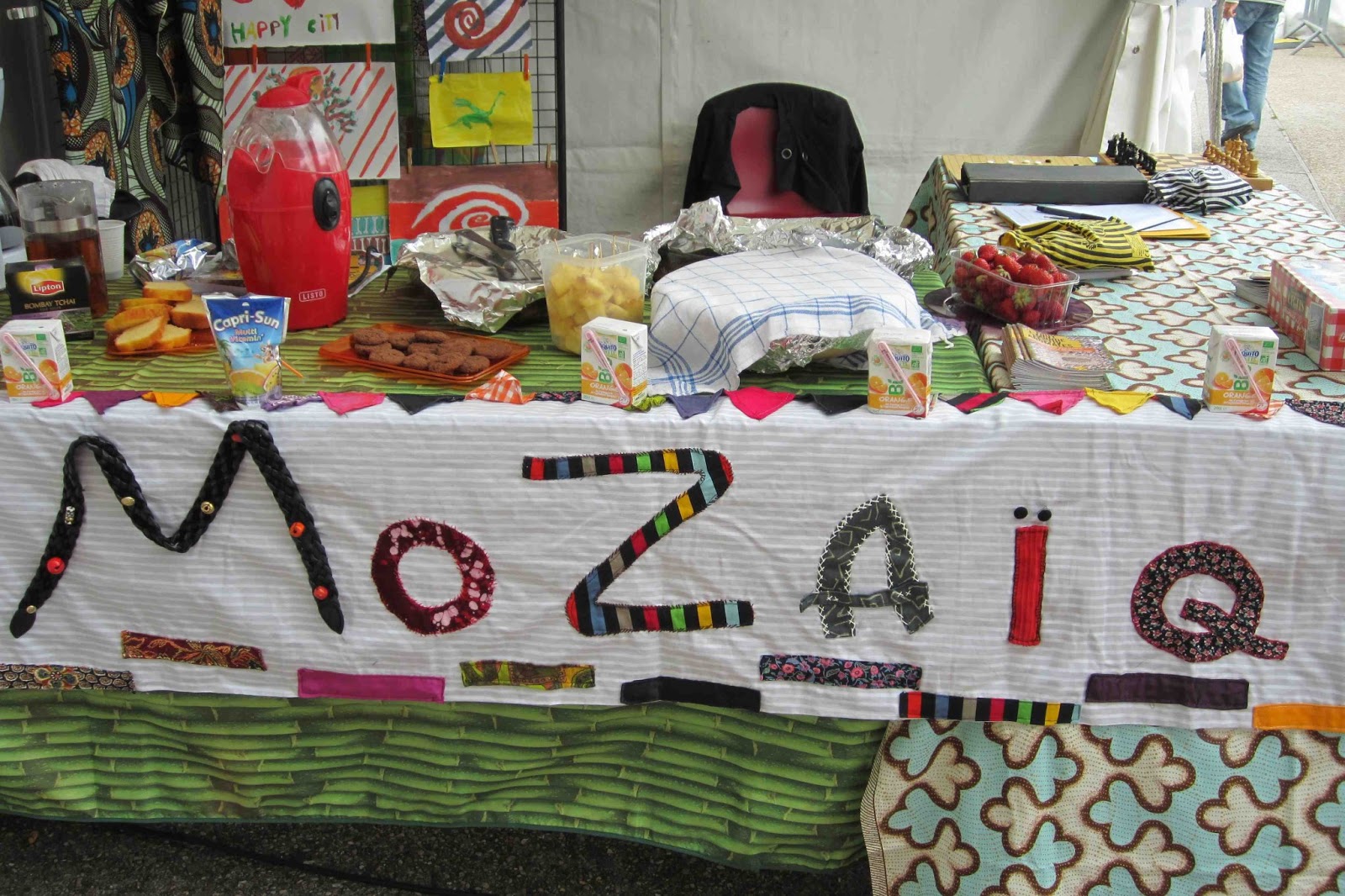 Le 22 juin dernier, 5 éminents représentants de Mozaïq tenaient un stand sur le parvis de la Place de France à Massy, au Village de la Diversité… Comment faire plus adapté ?
